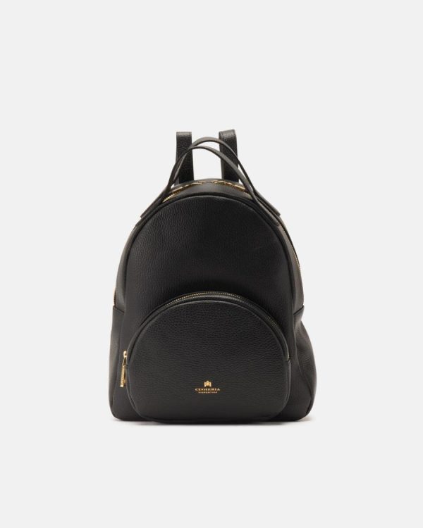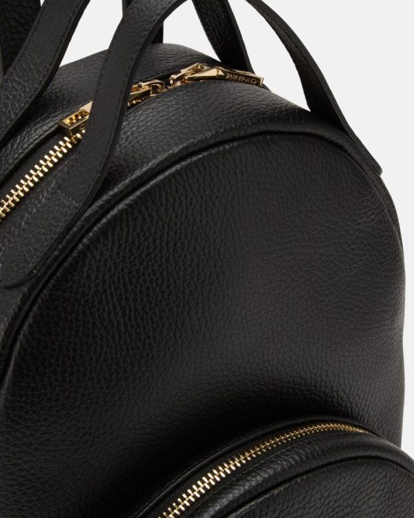 External details: front pocket with zip closure and gold coloured fire printed logo.