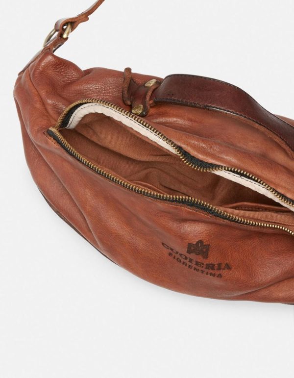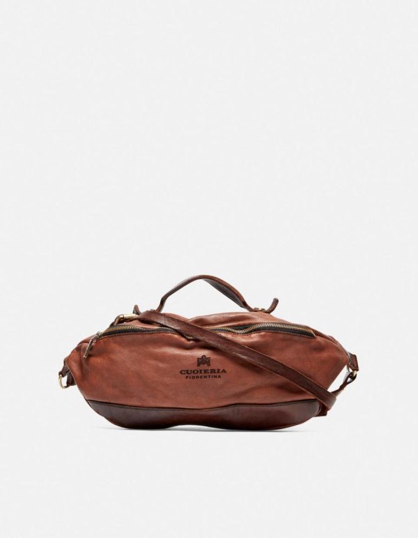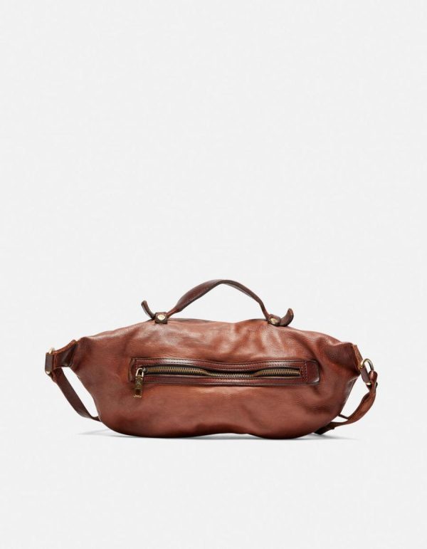 A practical and versatile fanny pack to be a trusted ally in hectic moments. Practical and metropolitan, perfect for travel and work, the Millennial fanny pack fits any outfit. The single compartment is convenient for short trips when you want to have everything at hand. The eye-catching details, the antique brass-coloured metal zips and the irresistible two-tone vintage effect make it an ideal accessory for any outfit. For the man projected into the future.