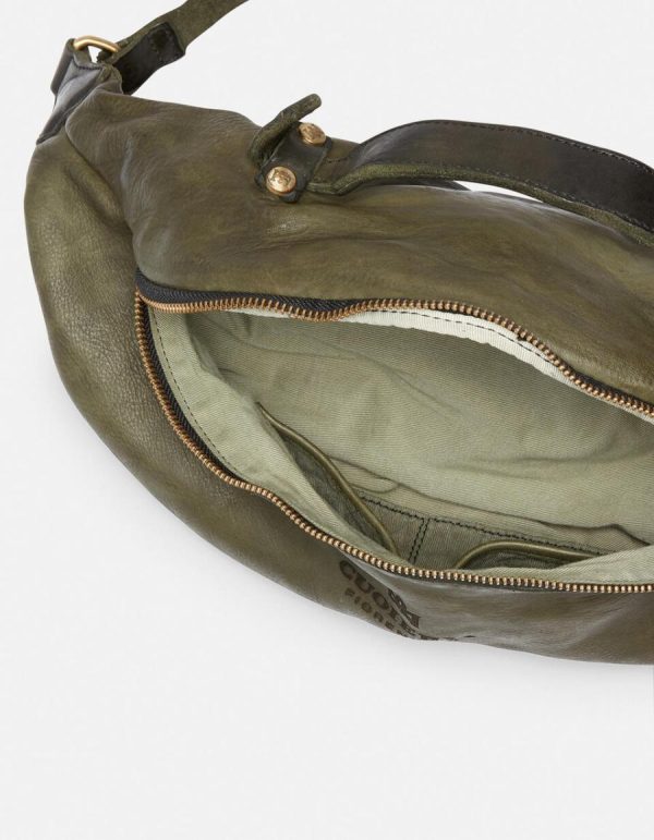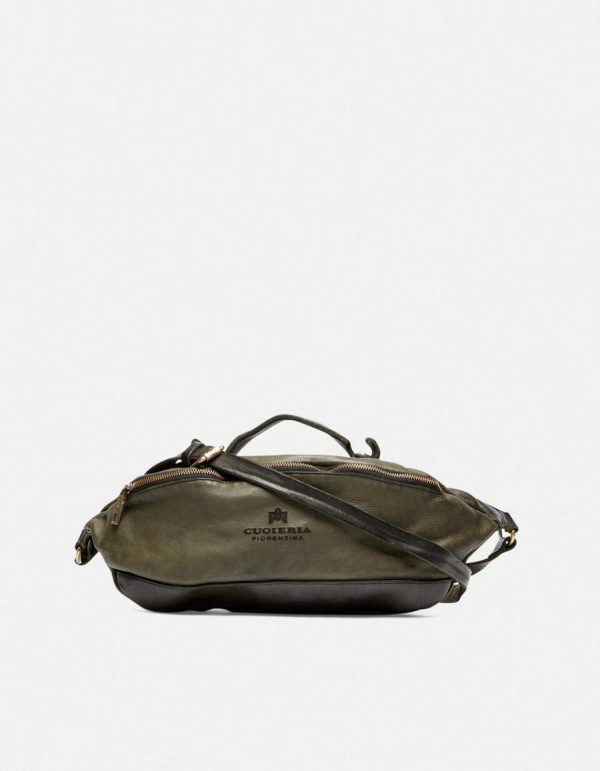A practical and versatile fanny pack to be a trusted ally in hectic moments. Practical and metropolitan, perfect for travel and work, the Millennial fanny pack fits any outfit. The single compartment is convenient for short trips when you want to have everything at hand. The eye-catching details, the antique brass-coloured metal zips and the irresistible two-tone vintage effect make it an ideal accessory for any outfit. For the man projected into the future.