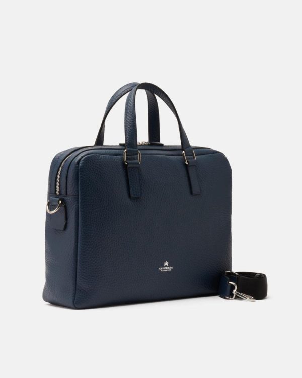 Made of soft, hard-wearing leather, the Brad briefcase has enough space to hold a laptop, numerous documents and all daily essentials. Its classic shape, metal zips and removable shoulder strap make it an ideal accessory for both student and professional, fitting any outfit, from classic to sporty. For the man who makes no compromises.