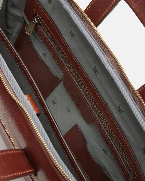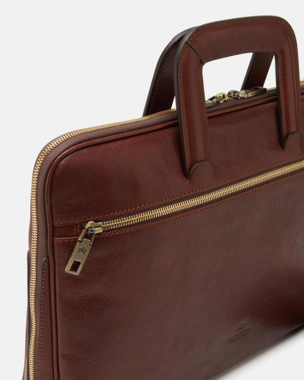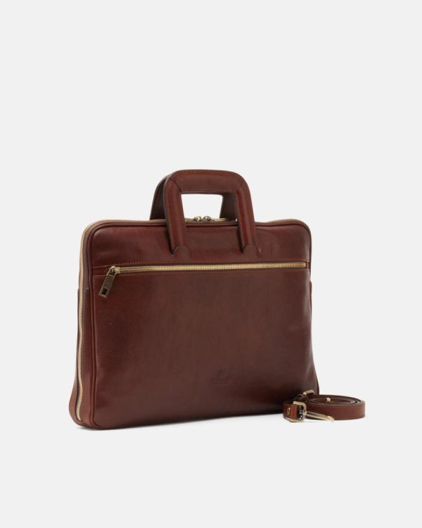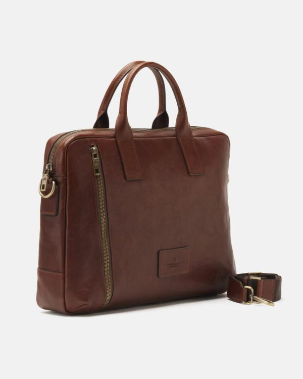Made of durable natural leather, the Warm and Colour briefcase has enough space to hold a laptop, numerous documents and all the daily essentials. Its marked details, aged brass-coloured metal zips and removable shoulder strap make it an ideal accessory for both student and professional, adapting to any outfit, from classic to more sporty. For the man who makes no compromises.