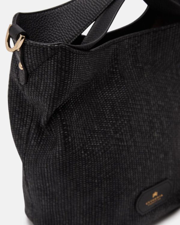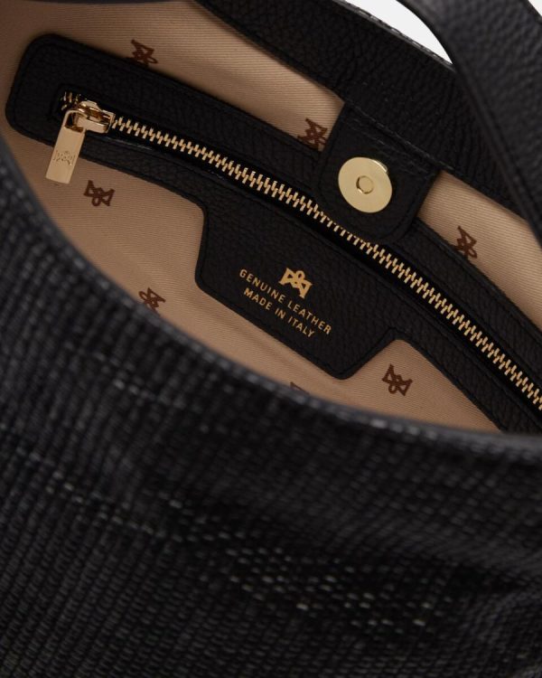 Refined raffia made from a weave of cotton and linen threads and details in soft first-grain calfskin.