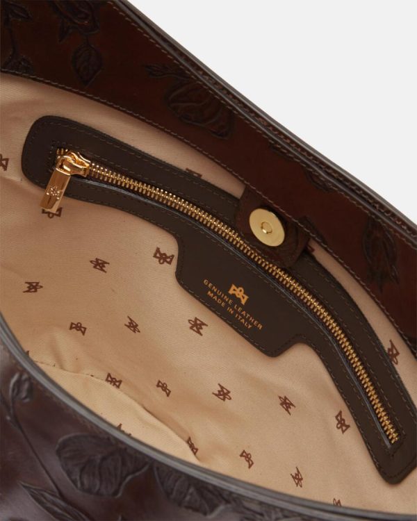Mimi represents a true style icon and represents a worldwide exclusive of the brand. The peculiarity is contained in the long articulated process consisting of over 13 processing steps of the floral motif. Not only calfskin, but a true artwork, expertly hand-painted on different levels. The end result is a unique material of its kind, with which small masterpieces are made.