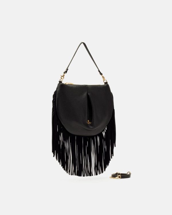 Cuoieria Fiorentina Crossbody Bags | Women Mini Pouch With Fringes Black
