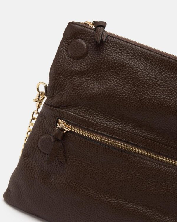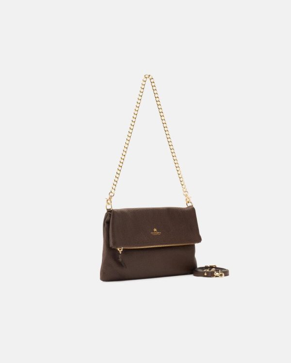 External details: flap and zip closure with gold embossed logo; frontal pocket with zip closure.