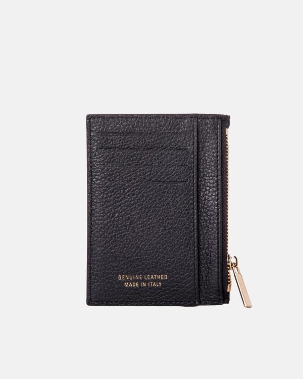 External details: 8 credit card slots, 2 lateral pockets, zipped purse and gold coloured fire printed logo.