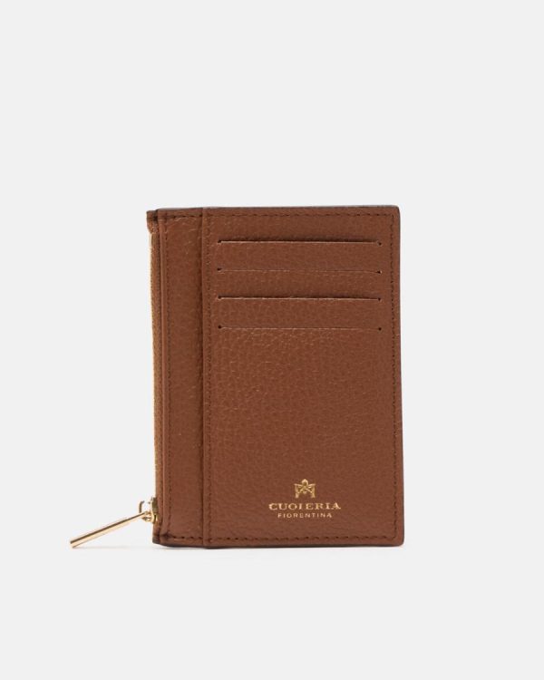 Cuoieria Fiorentina Leather Wallets | Women Card Holder With Zip Caramel