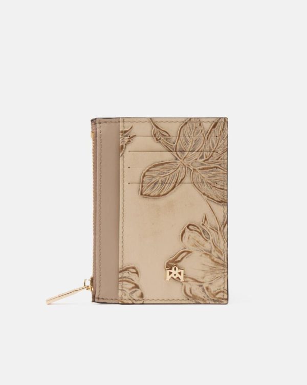 The Mimì card holder combines gold-coloured metal details with the typical and inimitable floral rose design. Compact and colourful, it is a refined accessory that can be carried in a tote bag, a clutch or comfortably in a handbag. It is slim and practical, with a central zipped compartment and several card slots. Having everything at hand, without sacrificing style.