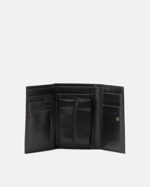 Internal details: 8 credit card slots, 3 pockets, double bill compartment and snap button closure coin purse.