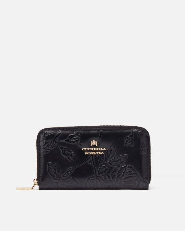 Cuoieria Fiorentina Leather Wallets | Women Zip Around Wallet Black