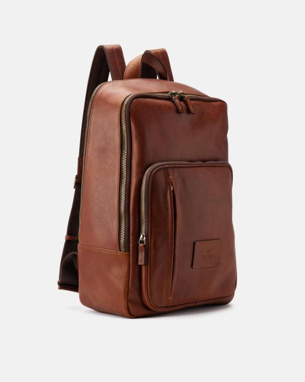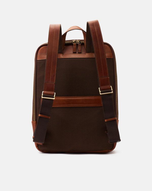 This sophisticated brown backpack masterfully blends timeless vintage aesthetics with modern functionality. Featuring two spacious zippered interior compartments designed to securely organize your laptop and essential documents, making it the ultimate work-to-travel companion. The distinctive antique brass hardware, premium zipper closures, and rich vintage finish create an executive accessory that commands attention. Engineered for both professionals and students who refuse to compromise on style and quality.