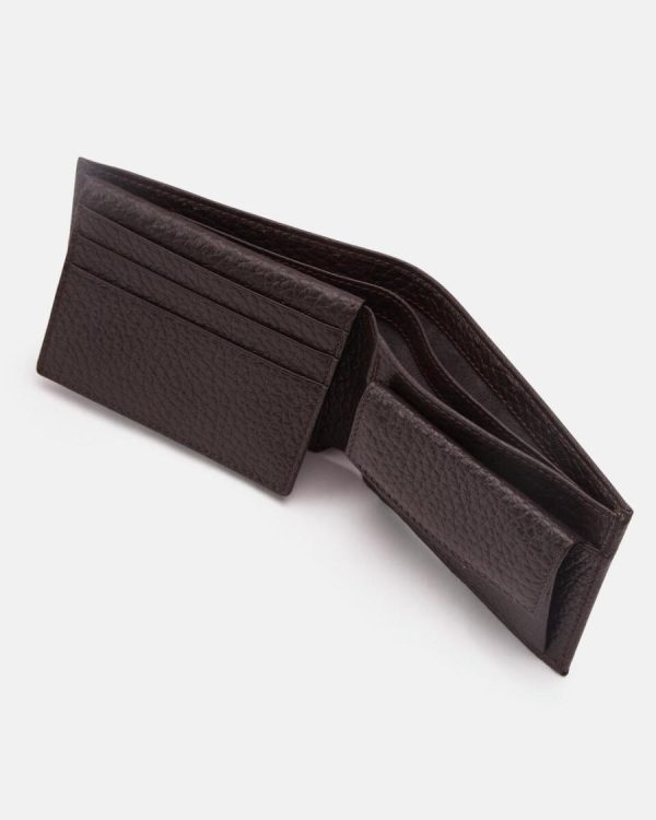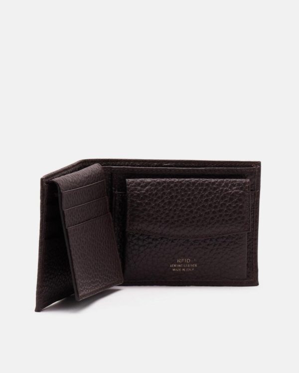 Interior details: 8 card slots, double banknote compartment, three pockets and coin holder with button closure.