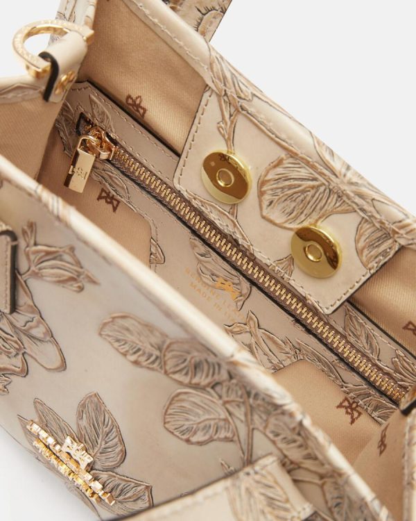 Elegant look and unmistakable style for the Dora mini tote bag, which becomes a real jewel thanks to the floral design with roses, typical of the brand. This bag is a refined accessory, designed for everyday use, but also to be the star of the most important evenings, enhancing any outfit!
