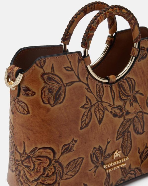 Mimi represents a true style icon and represents a worldwide exclusive of the brand. The peculiarity is contained in the long articulated process consisting of over 13 processing steps of the floral motif. Not only calfskin, but a true artwork, expertly hand-painted on different levels. The end result is a unique material of its kind, with which small masterpieces are made.