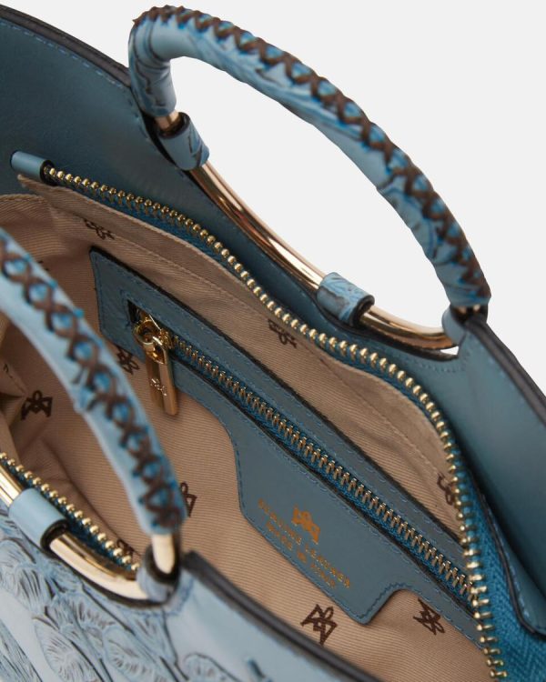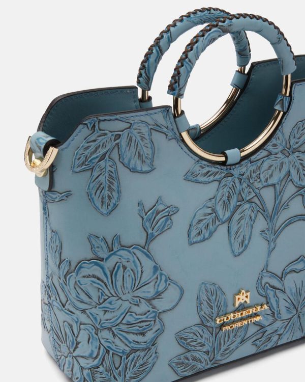 Mimi represents a true style icon and represents a worldwide exclusive of the brand. The peculiarity is contained in the long articulated process consisting of over 13 processing steps of the floral motif. Not only calfskin, but a true artwork, expertly hand-painted on different levels. The end result is a unique material of its kind, with which small masterpieces are made.
