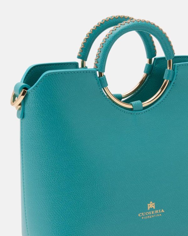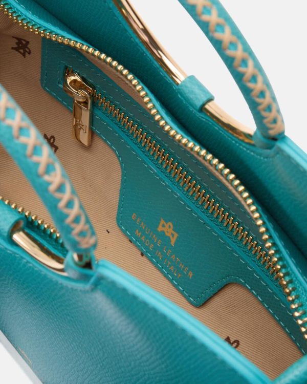 Eclectic, linear and decidedly cool, this exceptional Mini Bag Oblò in “palmellato” effect leather represents the ultimate in refinement in the summer version, and definitely reminds the beach bags straw 60s. Perfect to accompany a cocktail by the pool or a dinner on the waterfront.