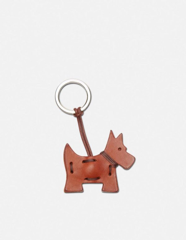 An elegant leather key ring featuring a charming Scottish dog design, perfect for everyday carry. Crafted from premium vegetable-tanned leather, this keychain combines exceptional softness with whimsical artistry, enhanced by meticulous hand-applied stitching that adds distinctive character.