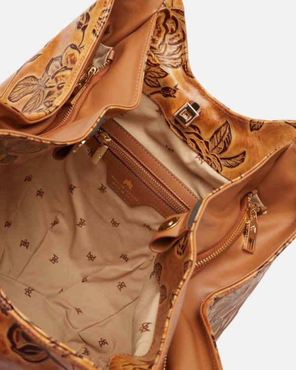 The Mimì Shopping Bag is filled with the most glamorous roses, and this shoulder bag with unmistakable workmanship will impress on any occasion. The spacious interior and unique aesthetic of the leather make this bag perfect for afternoons out shopping or business meetings where you want to get noticed. Wear it with single-tone outfits and start turning heads. When fashion is synonymous with style.