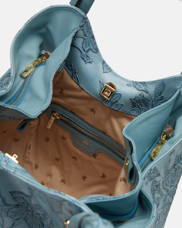 The Mimì Shopping Bag is filled with the most glamorous roses, and this shoulder bag with unmistakable workmanship will impress on any occasion. The spacious interior and unique aesthetic of the leather make this bag perfect for afternoons out shopping or business meetings where you want to get noticed. Wear it with single-tone outfits and start turning heads. When fashion is synonymous with style.