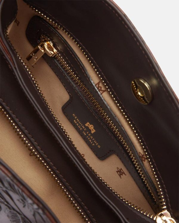 The Mimì collection represents a true style icon and exclusive brand signature. Each piece undergoes an extraordinary artisan process featuring over 13 meticulous steps to create the intricate floral motif. Crafted from premium calfskin, this bag showcases expert hand-painted artistry across multiple layers, resulting in a truly unique material that transforms each piece into a wearable masterpiece of Italian craftsmanship.