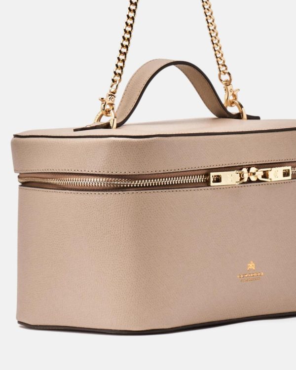 The perfect chic solution for carrying your cosmetics for quick touch-ups or your complete daily essentials, this sophisticated rigid case features a single zippered compartment that conveniently organizes all your makeup accessories. Ideal for travel with its included shoulder strap, this case embodies luxury and refined elegance. For fashion-forward individuals who demand both style and functionality!