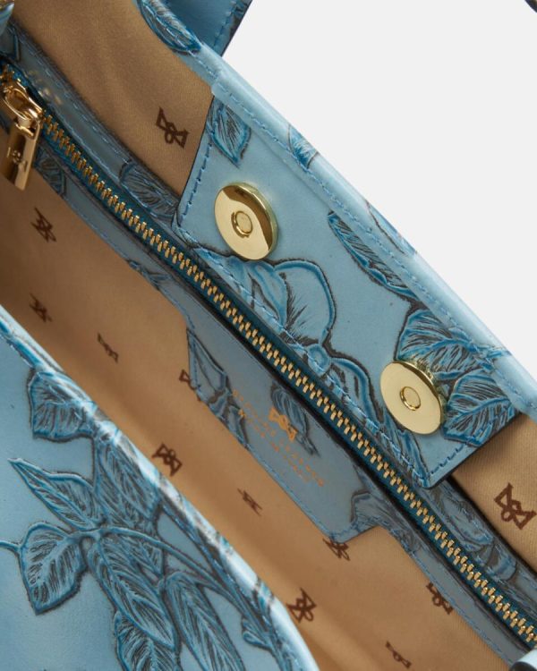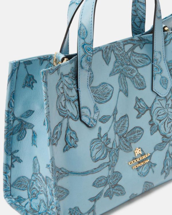 Mimi represents a true style icon and represents a worldwide exclusive of the brand. The peculiarity is contained in the long articulated process consisting of over 13 processing steps of the floral motif. Not only calfskin, but a true artwork, expertly hand-painted on different levels. The end result is a unique material of its kind, with which small masterpieces are made.