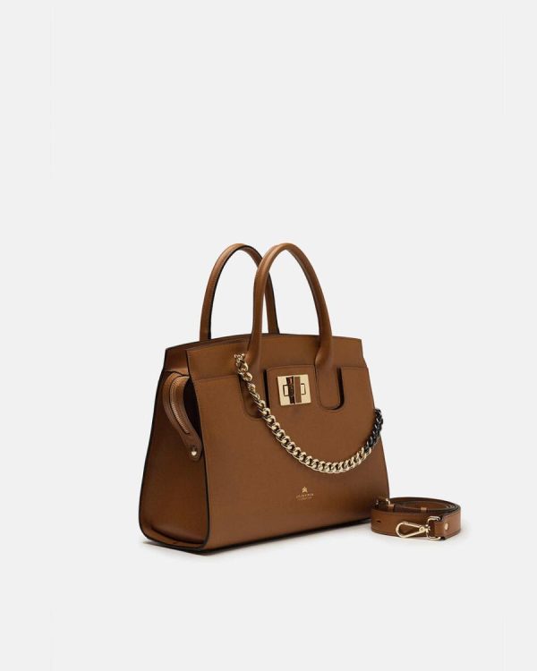 Refined, darling, and the perfect size for your essentials on busy days, the Bella Medium Tote expresses its elegance through a solid design and bright golden inserts. With finely honed leather able to withstand your many daily commitments, this is the tote for the independent woman on the move, capable of expressing her own style through the accessories she chooses.
