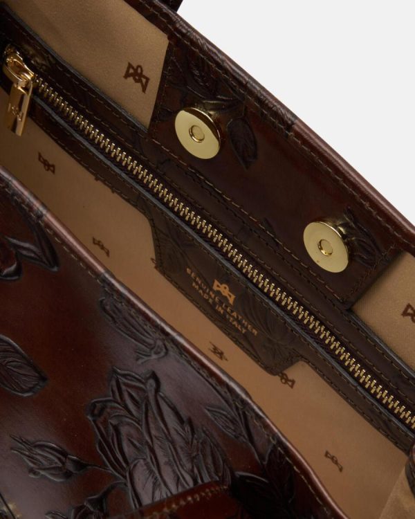 Elegant look and unmistakable style. The Dora tote bag is perfect for those who do not want to go unnoticed thanks to the floral design with roses, typical of the brand. The durable leather with its bold shape is ideal for everyday use and more formal outings: the bag’s simplicity and linear profile will turn heads.