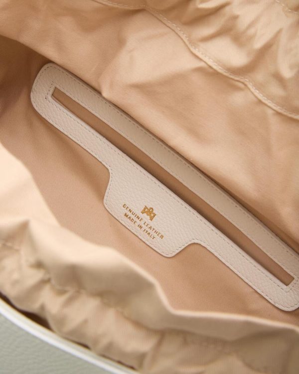 Refined natural-effect rafia with contrasting central detail in soft first-grain calfskin.