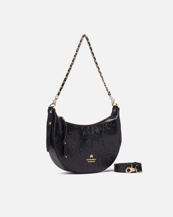 The perfect everyday companion that combines elegance with functionality! This beautifully designed hobo bag features a sophisticated half-moon silhouette that transitions effortlessly from day to night. The luxurious gold chain detail and adjustable shoulder strap offer both style and comfort. With its surprisingly spacious interior and exquisite 13-step handcrafted floral motif, this bag is your ideal partner for city adventures and elegant evening events alike. A true statement piece that elevates any outfit.