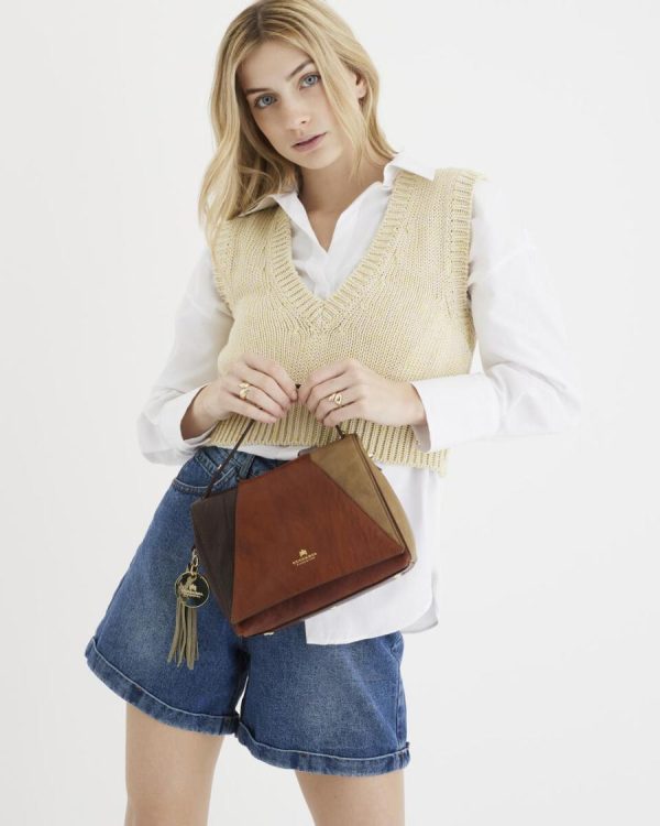 Discover the perfect blend of sophistication and functionality with the Musa Messenger bag. This beautifully crafted bag features an intentionally distressed and textured appearance that adds distinctive character to any outfit. Wear it as a crossbody for hands-free convenience or carry it over the shoulder using the studded handle for versatile styling. The rich, streaked leather showcases stunning light-to-dark variations that create depth and visual interest. This compact yet surprisingly roomy bag organizes your essentials perfectly, making it ideal for both daily use and special occasions. A true statement piece that elevates modern style while embracing eco-conscious craftsmanship.